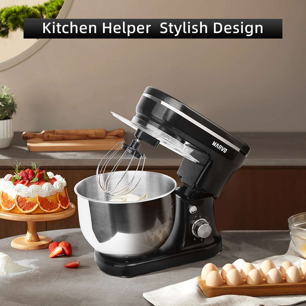 - Accesorios: incluyen gancho para masa, batidor (plástico), batidor y protector contra salpicaduras para masa.