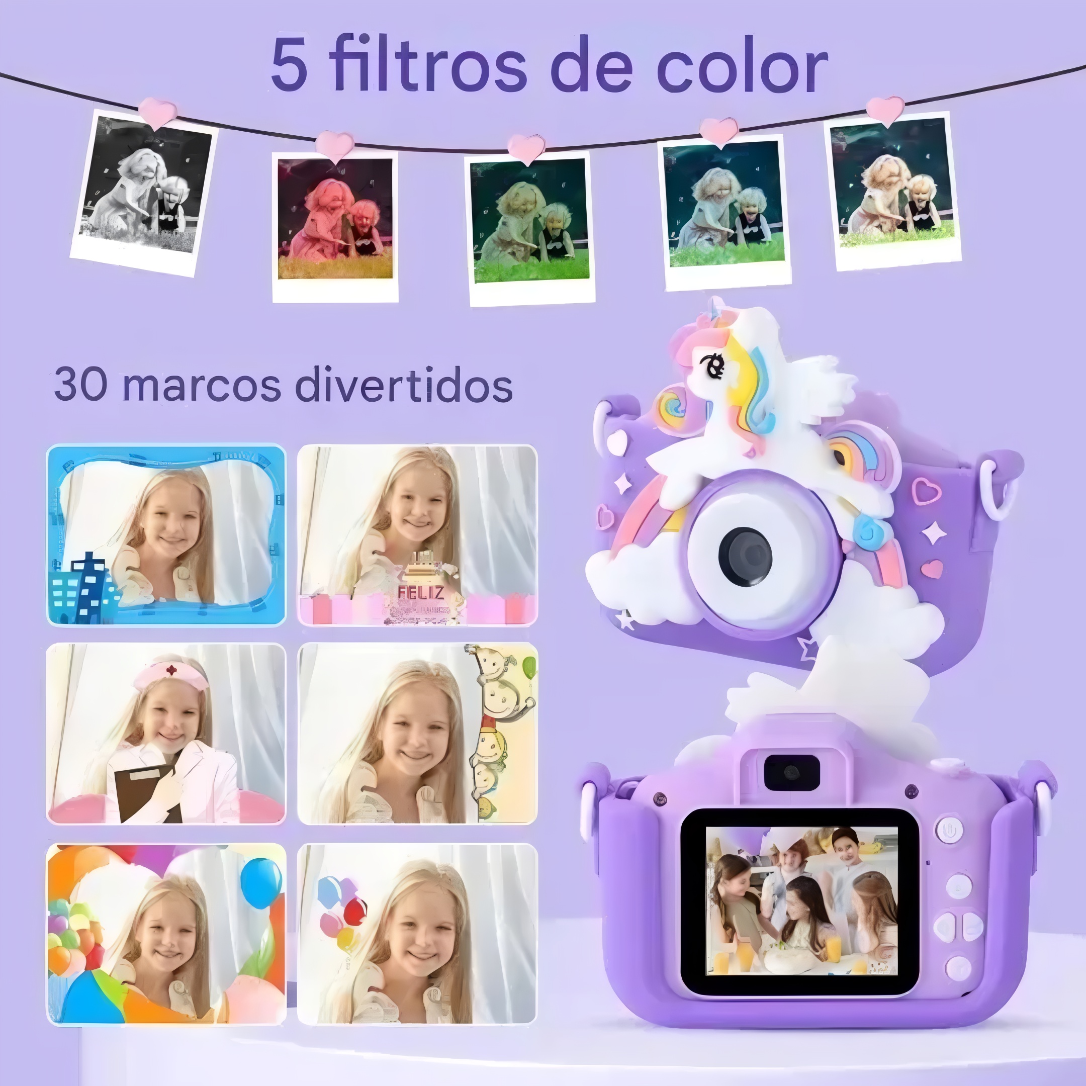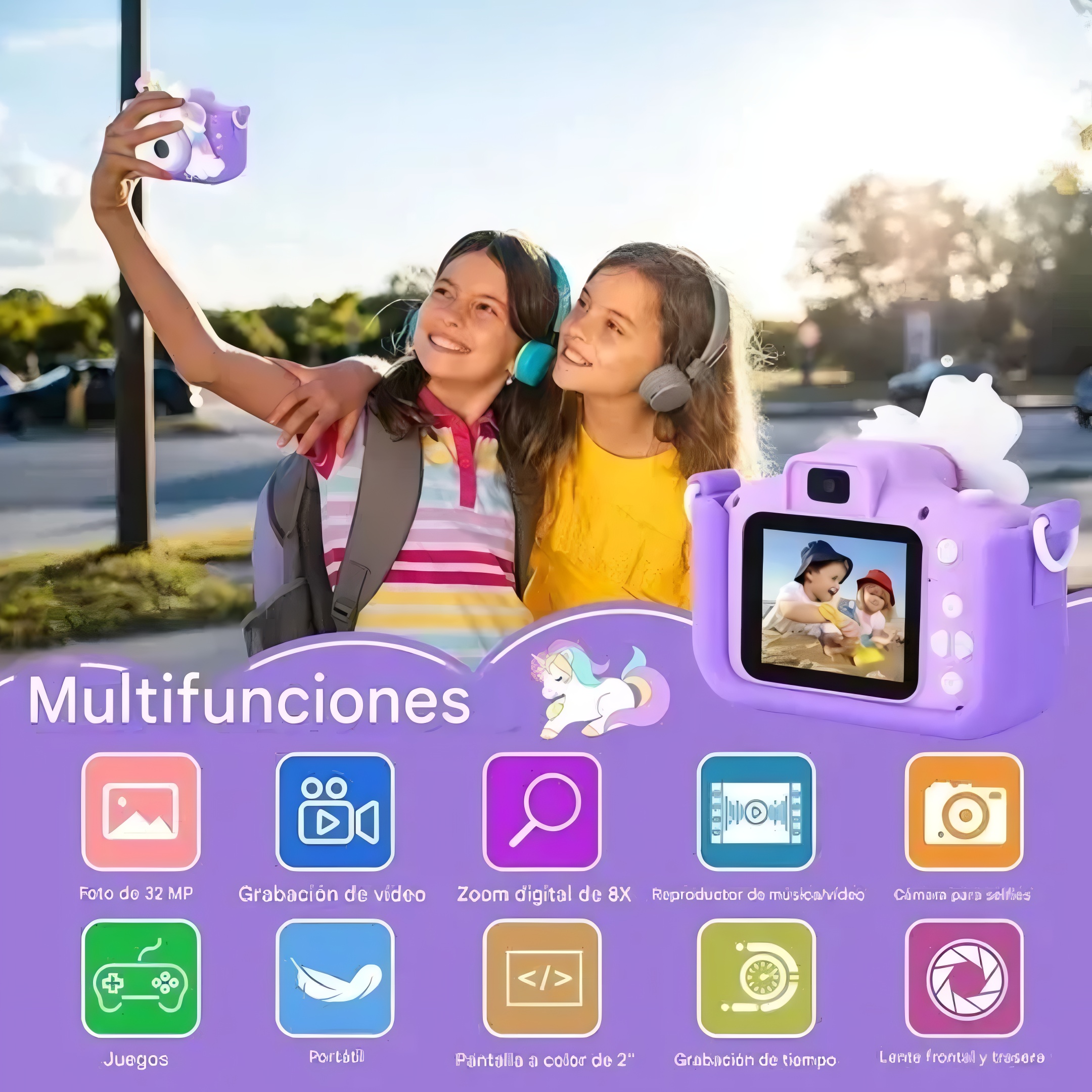 Camara De Foto Y Video Infantil Unicornio Con Correa Y Usb®