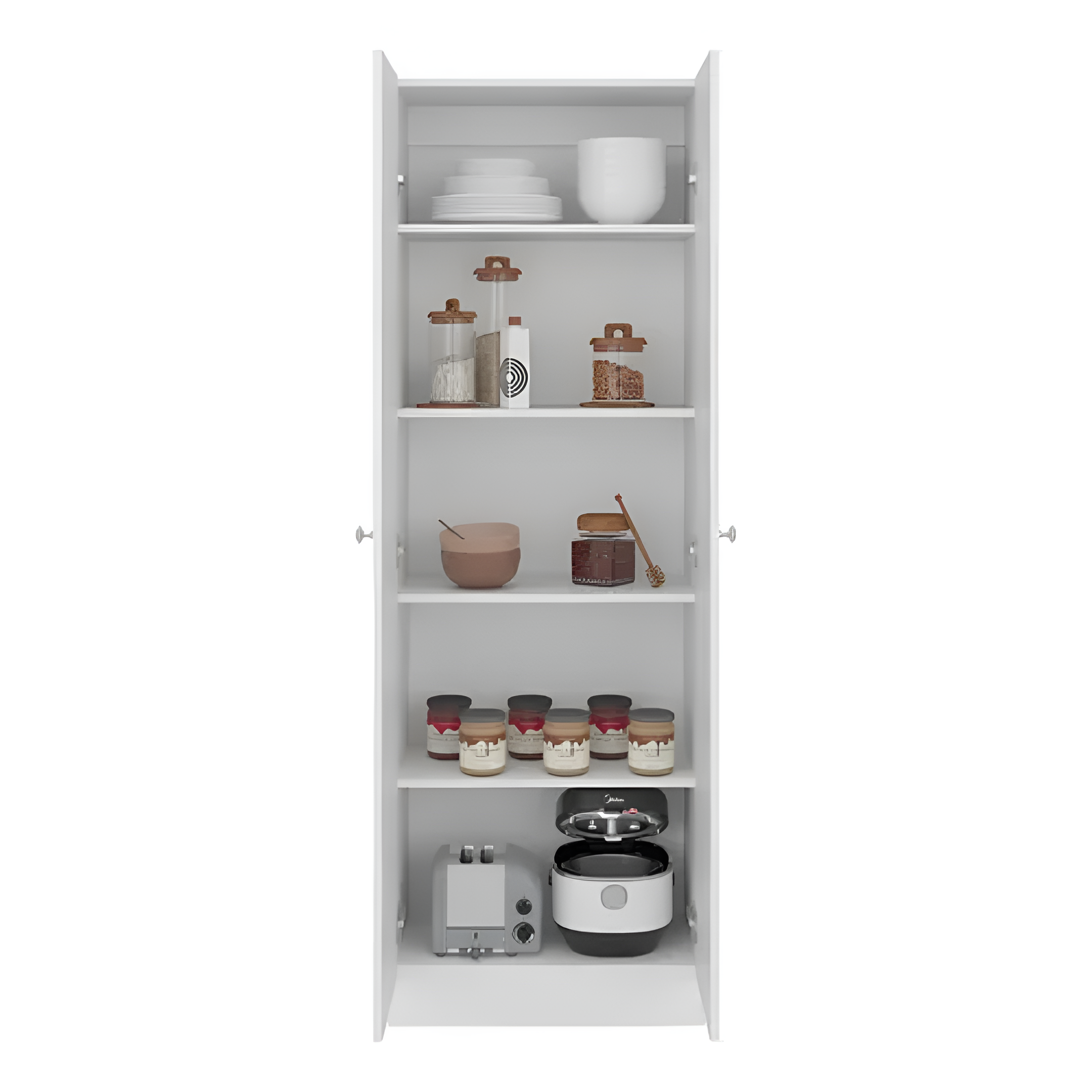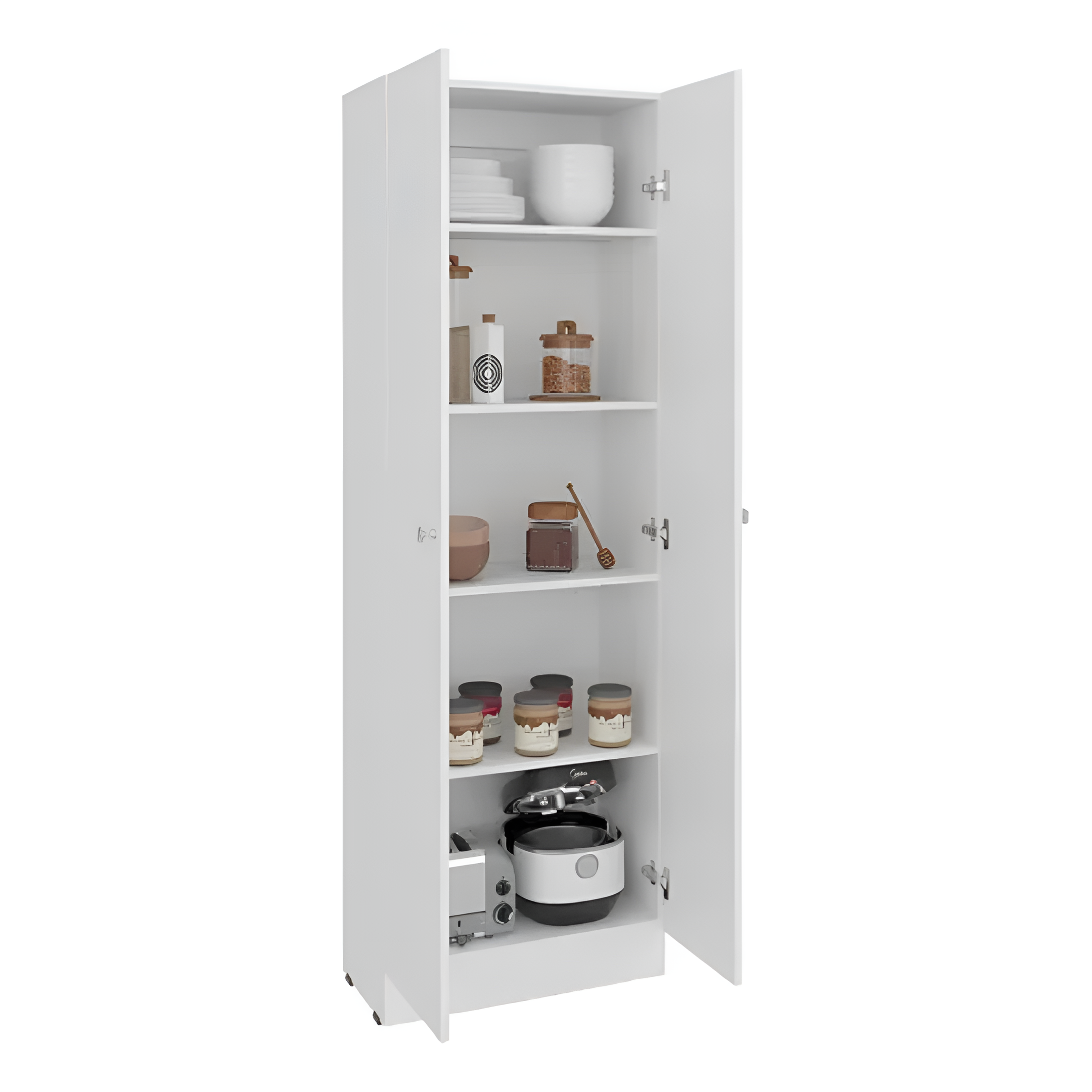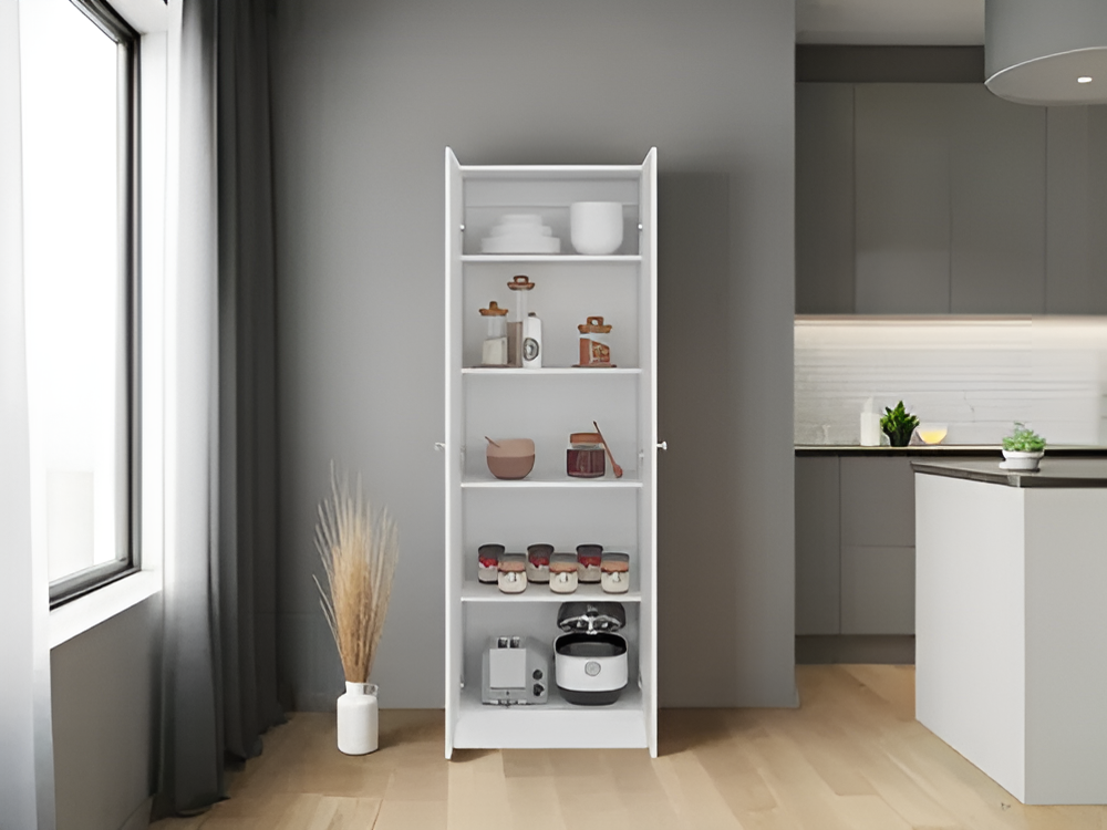 Fabricado en MDF de alta calidad, este mueble cuenta con dos puertas y cuatro estantes, brindando un amplio espacio de almacenamiento. Con unas dimensiones de 188 cm de alto y 34,5 cm de profundidad, se convierte en una opción ideal para cocinas pequeñas o para quienes buscan un diseño compacto pero eficiente.