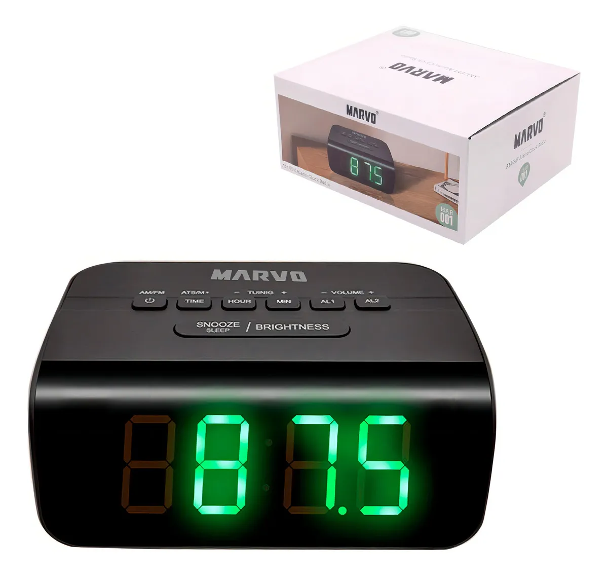 Su ligero diseño lo hace fácil de mover, permitiéndote disfrutar de tus estaciones preferidas en cualquier lugar. Ya sea que desees relajarte con música, ponerte al día con las noticias o subir el volumen de tus programas favoritos, este radio reloj es la elección perfecta para cualquier situación. El MARVO HAR-001 se adapta a tu estilo de vida, ofreciendo una experiencia auditiva práctica y agradable.