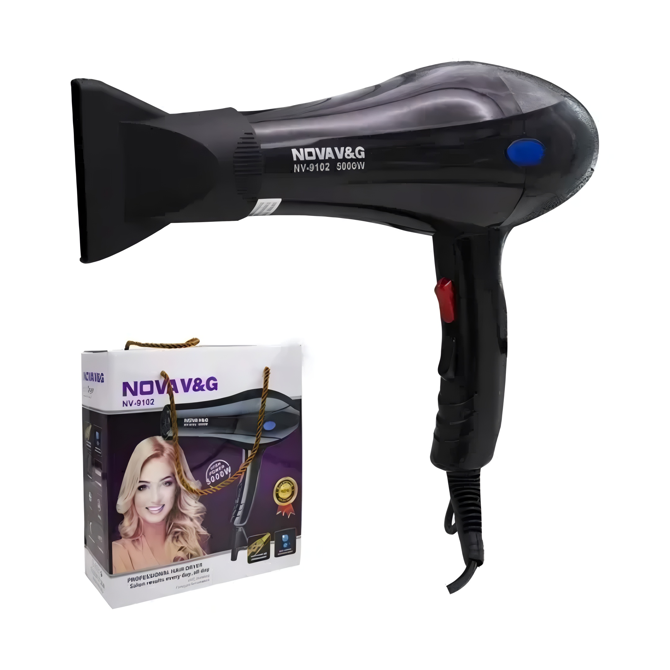 Experimenta la potencia de un secado rápido y eficiente con el Secador De Pelo Cabello 5000w Semi Profesional Domestico® de Nova, modelo nv 9102. Con una impresionante potencia de 5000 W, este secador es ideal para quienes buscan resultados profesionales desde la comodidad de su hogar. Su tecnología iónica reduce el frizz y permite un acabado suave y brillante, cuidando la salud de tu cabello mientras lo secas.