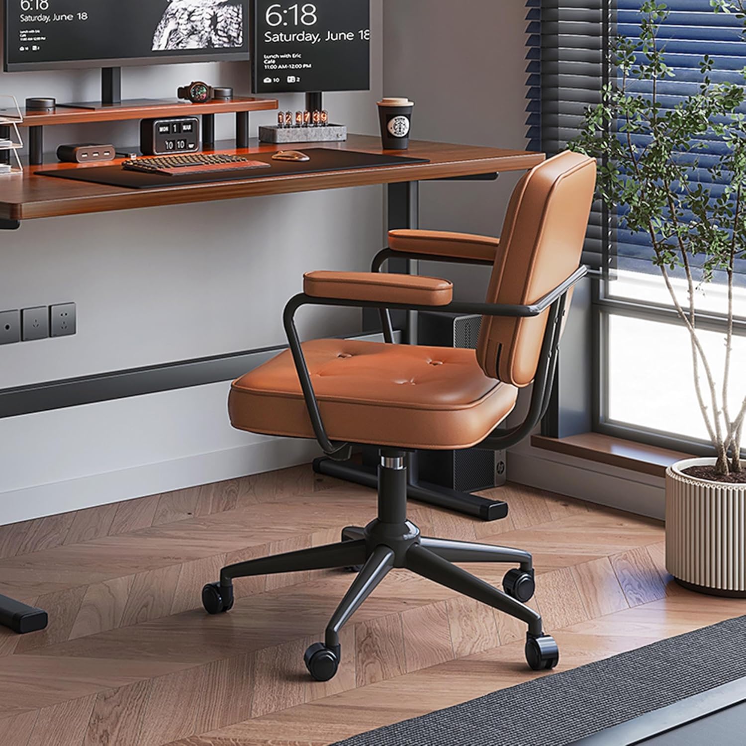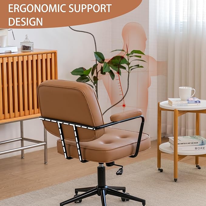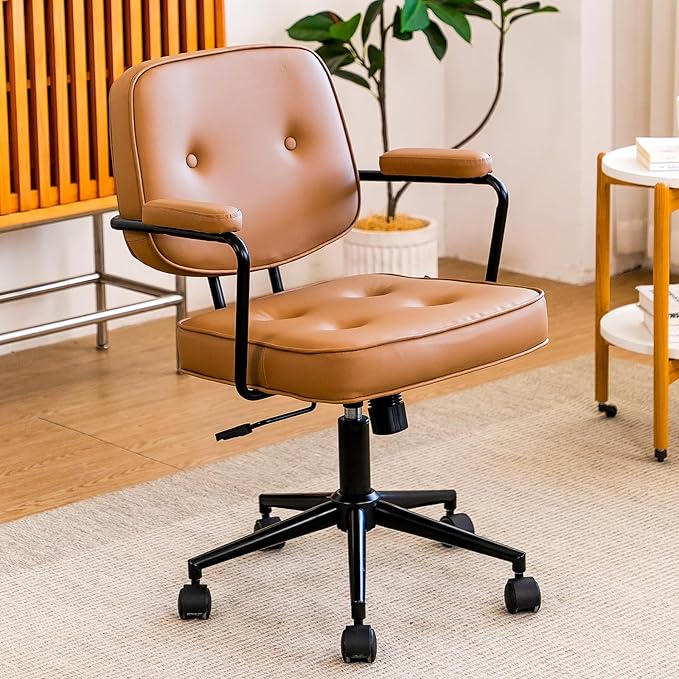 Silla De Oficina Vintage Cuero Sintético Ruedas 360®